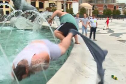 Cute Panda’s скокнаа во фонтаната на плоштад