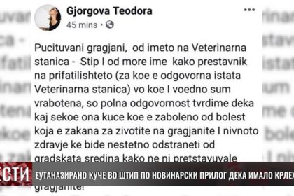 Еутаназирано куче во Штип по новинарски прилог дека имало крлежи