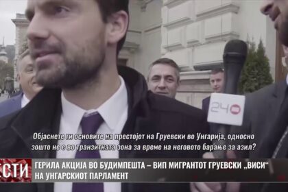 Герила акција во Будимпешта – „ВИП мигрантот“ Груевски виси на унгарскиот Парламент