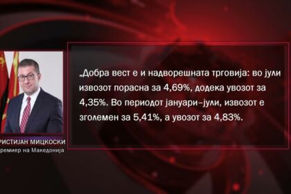 Мицкоски: Македонија оди напред, повеќе работни места, раст на трговска размена и стабилна економија
