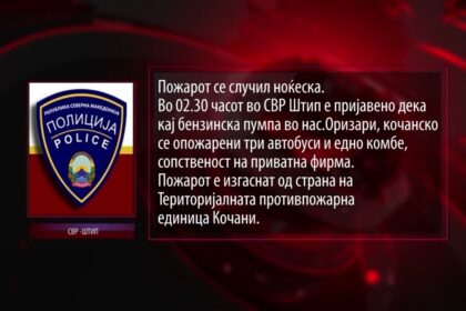 Во подметнат пожар во Штип изгорени се три автобуси и едно комбе