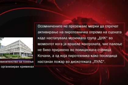 Проширена истрагата 13 полициски службеници од Штип и Кочани за пожарот во дискотеката „Пулс“
