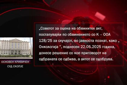 Судот го одобри обвинението за „Онкологија“, наскоро почеток на судењето против екс-директорот