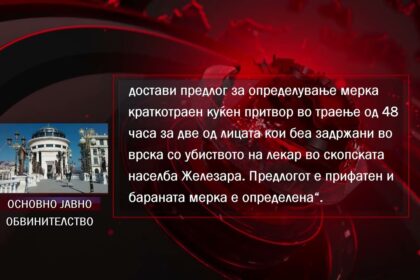 48-часовен притвор за двајца од приведените во врска со убиството на лекарот Трпковски