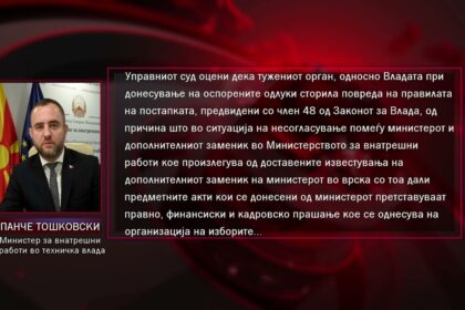 Управниот суд поништи три незаконски одлуки на Влада и ги потврди актите на Тошковски