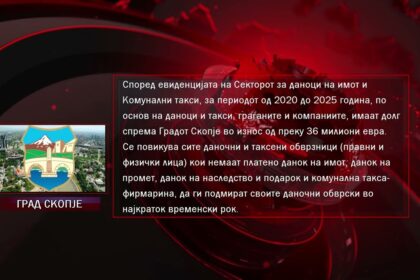 Граѓани и фирми имаат над 36 милиони евра долгови кон Град Скопје